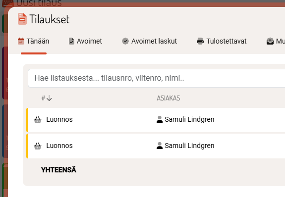 - Verkkokaupassa vielä maksamattomana oleva tilaus näkyy listoissa "Luonnos" -tilassa. Verkkokaupan tilaus poistuu automaattisesti 5 päivän kuluessa, jos maksua ei suoriteta loppuun joko kassassa tai verkkokaupassa.